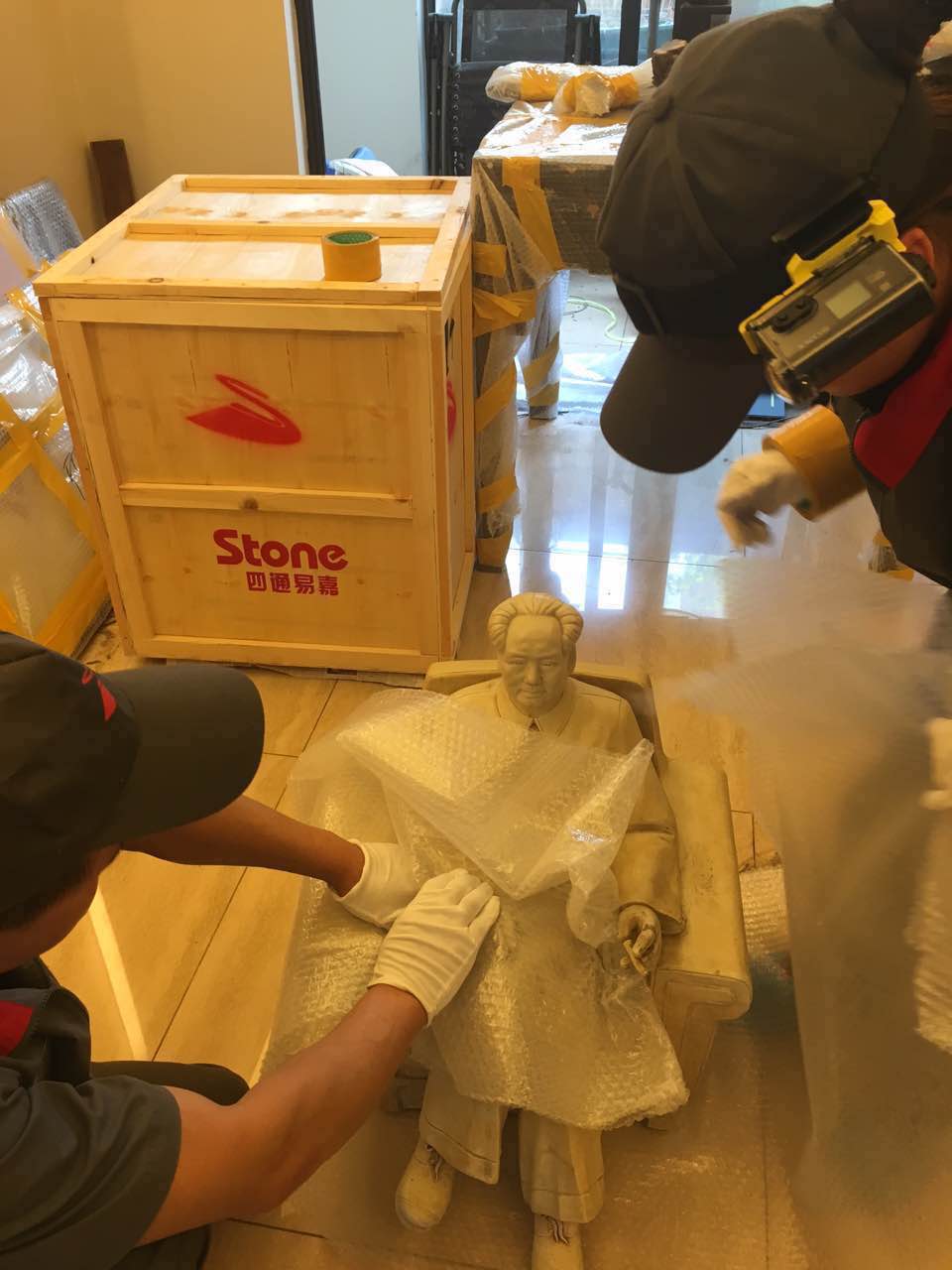 北海北岸,仿膳饭庄新址,四通搬家的工作人员在搬运厨房用品。北海北岸,仿膳饭庄新址,四通搬家的工作人员在搬运厨房用品。北海公园琼岛漪 …